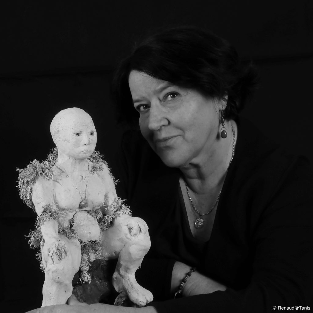 Elle sculpte d’après modèle vivant des personnages issus de la mythologie grecque, inclut des éléments naturels, moule, crée des bronzes à la patine inégalable. Elle pratique une technique aussi intemporelle que les mythes qui l’inspirent. La proximité avec le vivant permet une justesse anatomique tout en renforçant l’aspect expressionniste par une finition laissant percevoir la trace de la main.Le corps devient le reflet de l’âme, le mythe intègre le corps.