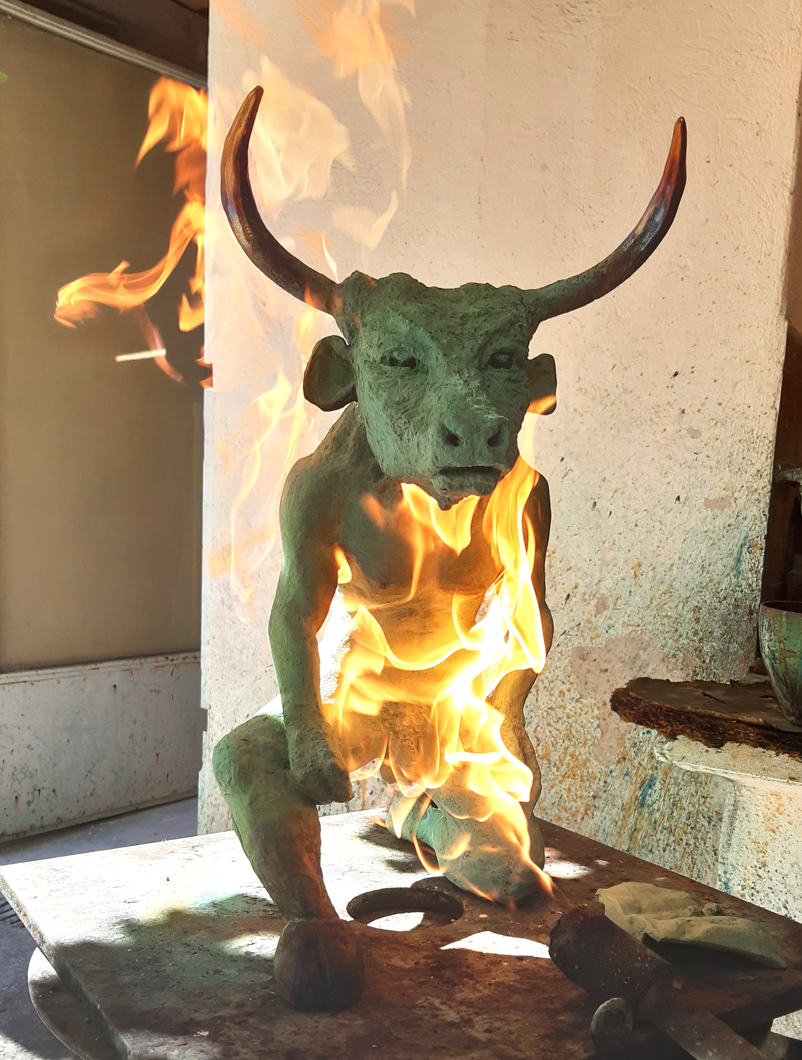 Le mythe intègre le corps … Minotaure et Faune de bronze ont une pièce enchâssée. Celle-ci est travaillée directement à la cire avant d’être fondue en bronze. Le sujet varie à chaque édition, c’est une pièce unique.
