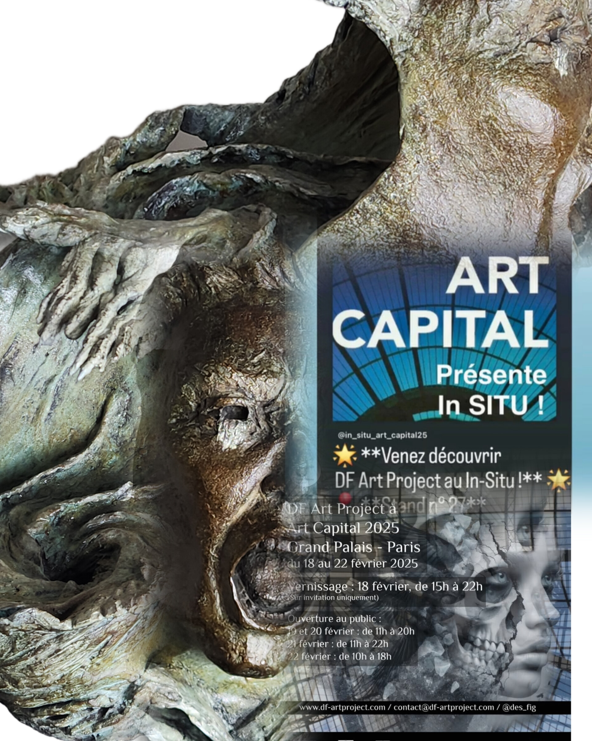 Le Cri de la Mer et Vortex, 2 sculptures en bronze sélectionnées pour Art Capital du 18 au 22 février 2025 ! Présentées sous la verrière du Grand-Palais de Paris, In-Situ avec DF ART-Project, destructuralisme figuratif.